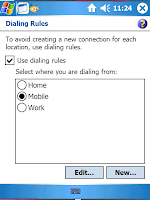 7. віконце dialing rules -- скоріше за все, тут лише два стандартних пункти (home та work), для зручності створюємо новий (жмемо кнопку new) з назвою mobile, вибираємо це правило для нашого з'єднання, і переходимо до налаштування (жмемо кнопку edit).