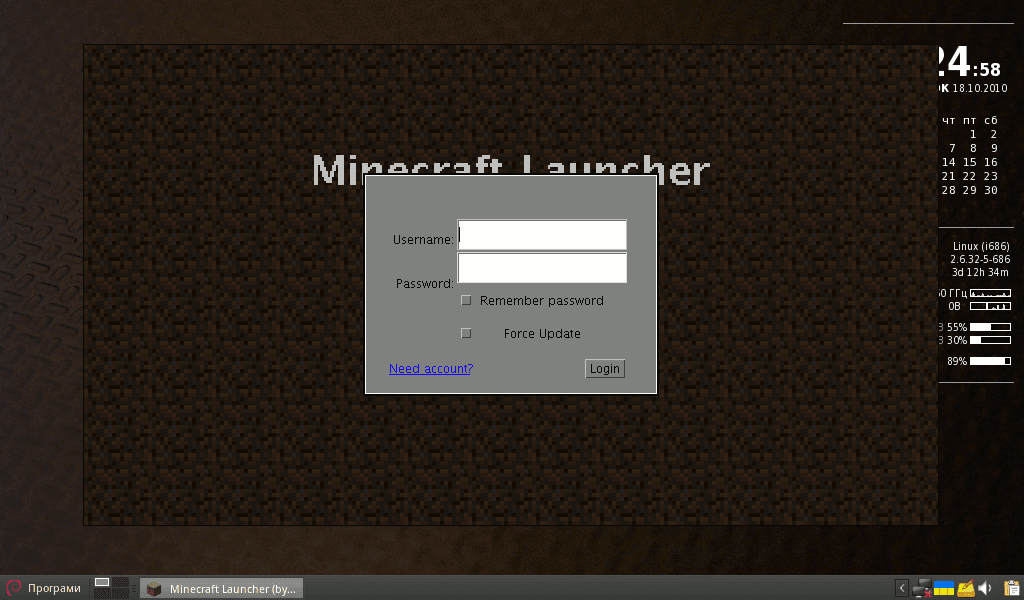 коротко про рецепт успішного запуску minecraft на linux. я запустив на нетбуці з crunchbang 10 alpha (statler) — підгальмовує, але їде, навіть іграбельно. секрети три:- minecraftsp замість офіційної версії з сайту
