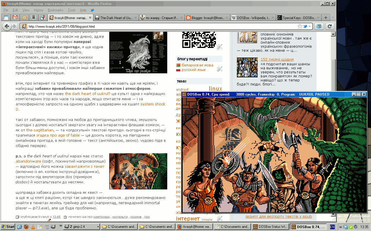 цитата. хто чув назву the dark heart of uukrul? це культ! одна з найкращих комп’ютерних ігор всіх часів та народів, якщо спитаєте мене (читати повністю)на ілюстрації можна роздивитися вікно dosbox із заставкою цієї культової рольовухи поруч із тим дописом. а тепер про те, як погратися в the dark heart of uukrul: