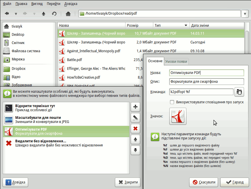 софтинка генеруватиме оптимізований pdf з вибраного файлу, додавши _k2opt до назви файлу.користуйтся, кому треба.