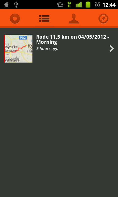 історія маршрутів відображається списком (скріншот) з мініатюрами мап (my tracks’и показують простіший список) і дозволяє переходити до статистики кожного трека з детальною мапою (скріншот), звідти ж можна розшарити інформацію про трек в гуглоплюси, фейсбуки, твітери-шмітери чи що там ще встановлено на смартфоні, а також еспортувати трек у форматі gpx.