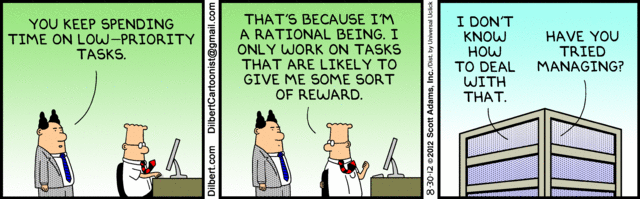 ділберт підказує 2012-08-30, 10:05 | tivasyk я просто покладу ось це тут, щоб не загубилося. передчуваю, що ще доведеться посилатися не раз на цю влучну ілюстрацію дуже банальної істини.оригінал — на сайті скота адамса, звісно ж.