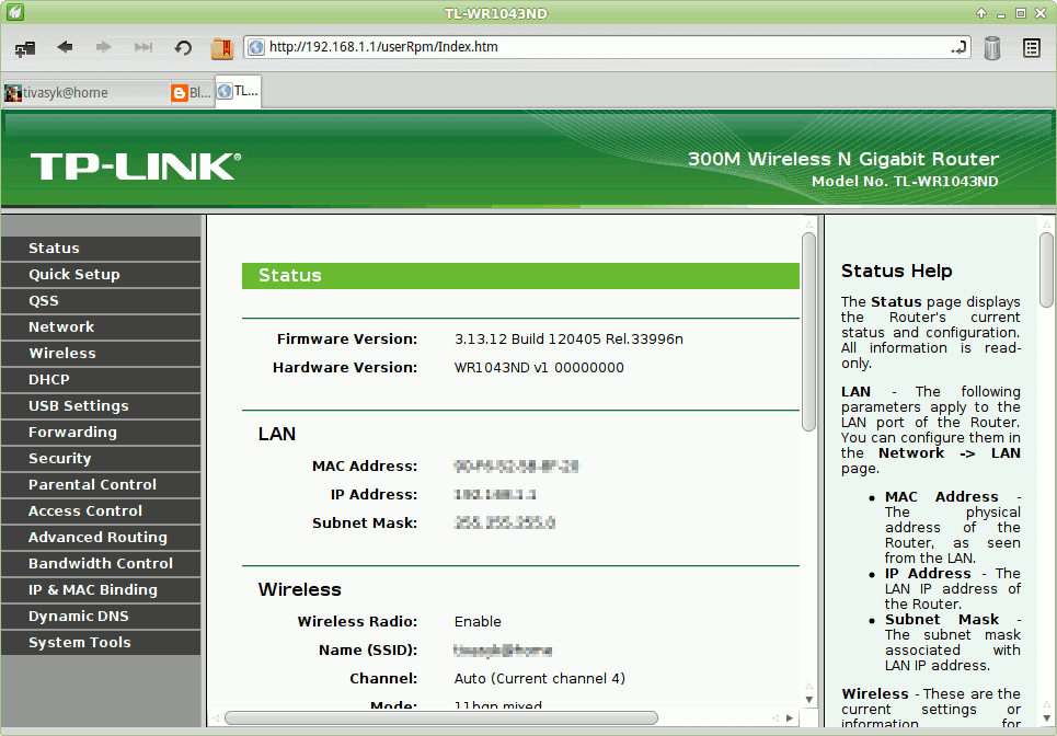 тож надивившись, взявся ставити dd-wrt. першим сюрпризом стало те, що вогнелис ніяк не хотів підвантажувати файл прошивки на рутер (бла-бла-бла transmit failed); довелося поставити midori, — пішло. залив, згідно інструкції, спершу підготовчу (factory-to-ddwrt.bin), потім останню стабільну версію робочої прошивки (tl-wr1043nd-webflash.bin). підключився до 192.168.1.1 — працює! налаштував швиденько бездротову локалку, перевірив, підключив до провайдерського кабеля…