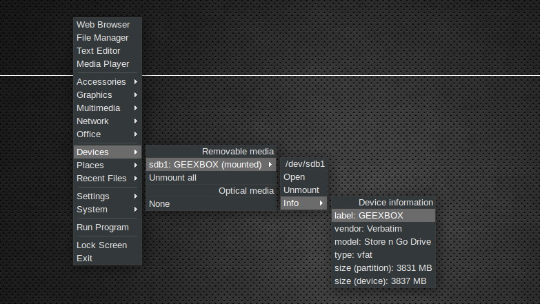 <menu id="devices" label="Devices" execute="/usr/bin/obdevicemenu" />