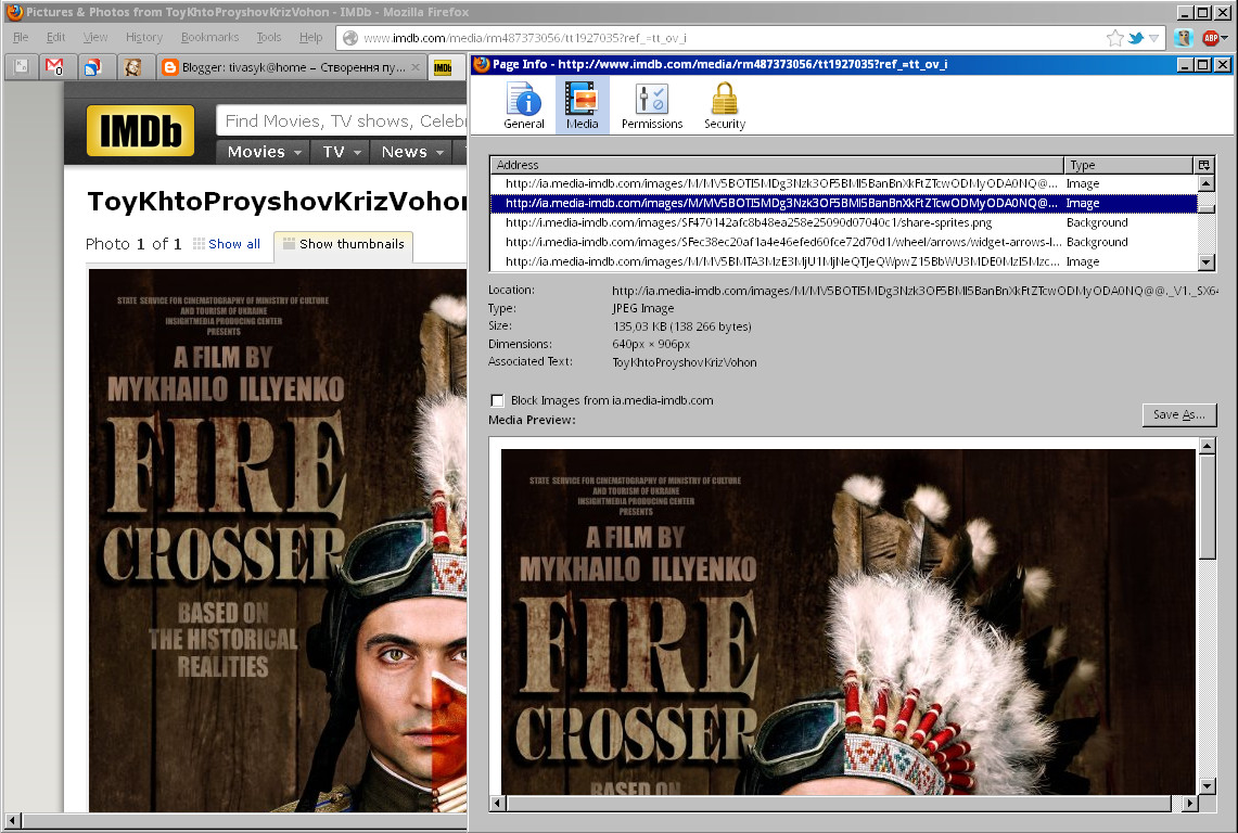 до речі, в наші часи, коли інтернет змінює життя а internet explorer втрачає релевантність… спроби сайтів на кшалт imdb.com завадити мені зберегти постер фільму, відключивши контекстне меню веб-оглядача — вже навіть не смішні. ці люди не можуть не знати про функцію вогнелиса tools > page info, котра дозволяє переглянути завантажені разом зі сторінкою медіа-файли і навіть має кнопочку save as? тепер знаєте і ви, якщо не знали раніше.