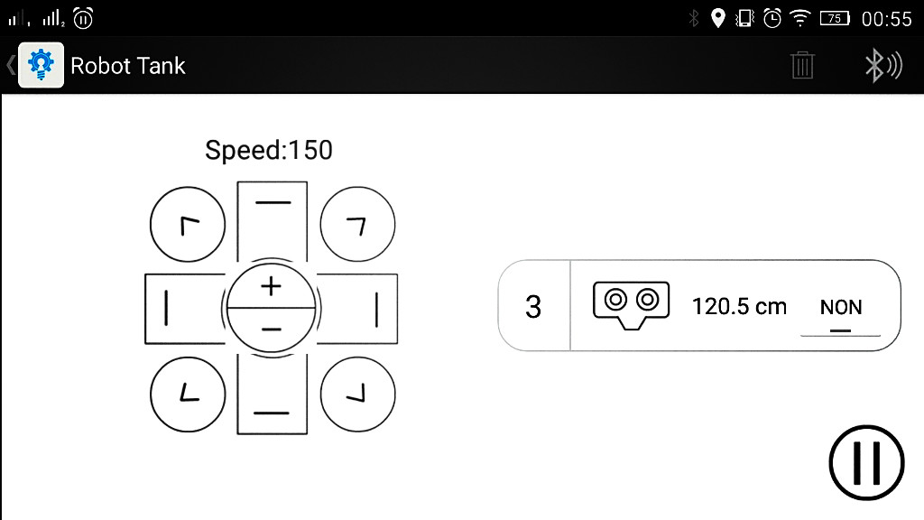 по-друге, ввечері після роботи я ще раз взявся до проблеми, і почав з того, що перевірив усі з'єднання та ще раз спробував підключитися смартфоном до робота… зненацька ультразвуковий датчик видав щось схоже на відстань до стіни! я клацнув джойстик — марсохід закрутився на місці!