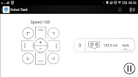 і тепер ультразвуковий датчик справно звітує про відстань до об'єкта попереду (120 см на скріншоті)! легкий дотик до віртуально джойстика — і марсохід поїхав.
