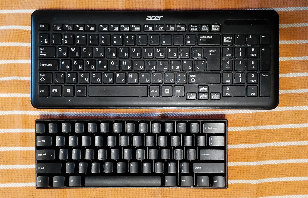 поновлення (2016-03-14). додав світлину з порівнянням розмірів v60 mini та компактної клавіатури з acer (з повнорозмірними клавішами, але на силіконовому килимку).