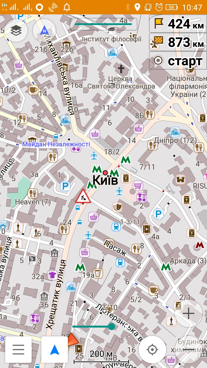 – інколи глючить режим орієнтації мапи за напрямом руху (трохи допомагає альтернативний режим «за компасом»);