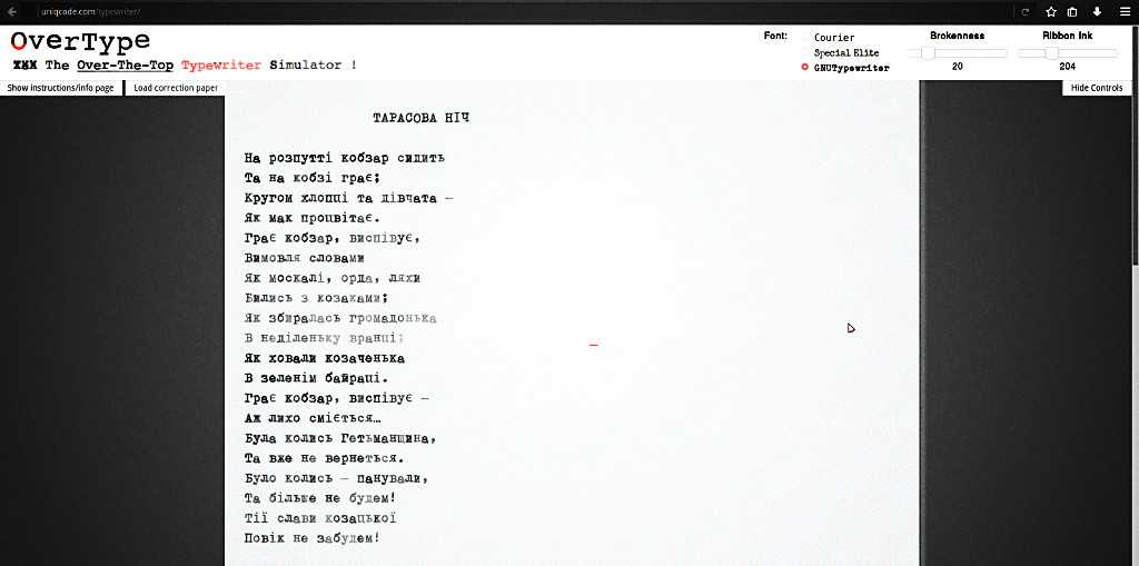…для вас, молодь, добрі люди створили overtype — онлайновий симулятор друкарської машинки:
