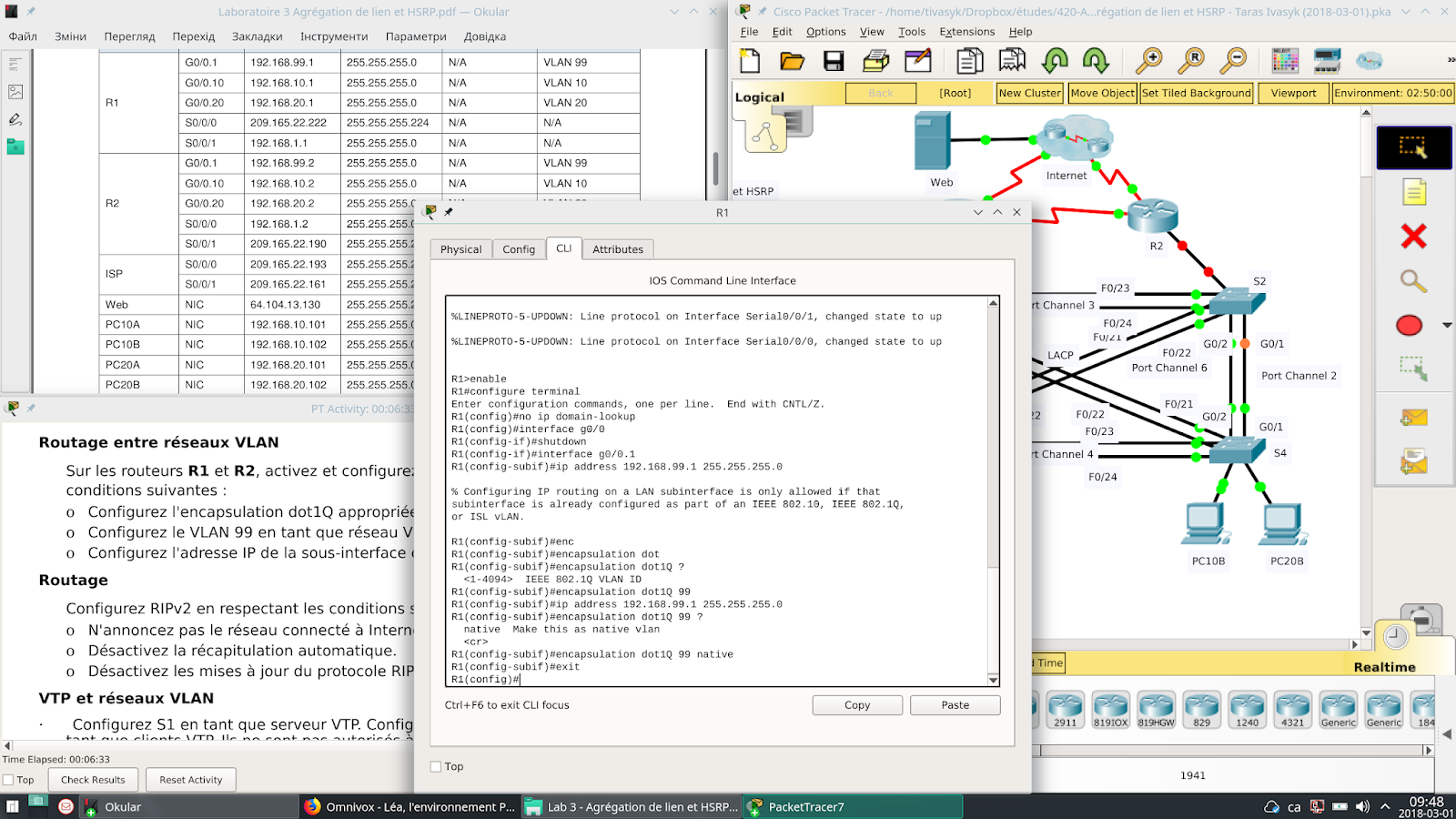 це лабораторна робота в packet tracer (навчальний емулятор мереж від cisco), котра поєднує теми маршрутизації (ripv2), віртуальних мереж (vlan/vtp) та агрегації з'єднань (trunk/stp).