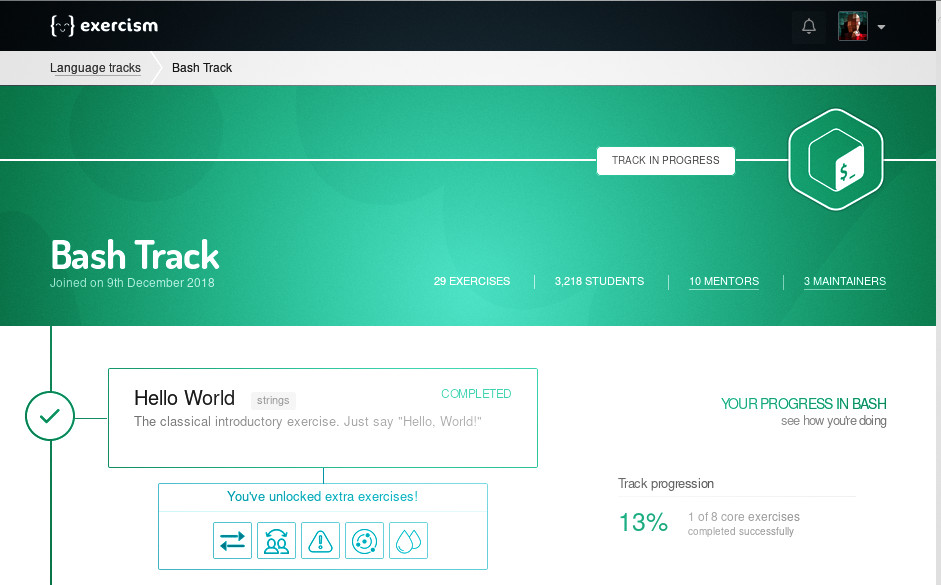 …але зате далі цікаво. щоправда, це самонавчання, по суті: жодних навчальних матеріалів (а навіщо, коли є tldp.org?), суто завдання і автоматизовані тести для перевірки. менторів поки що не бачив =)