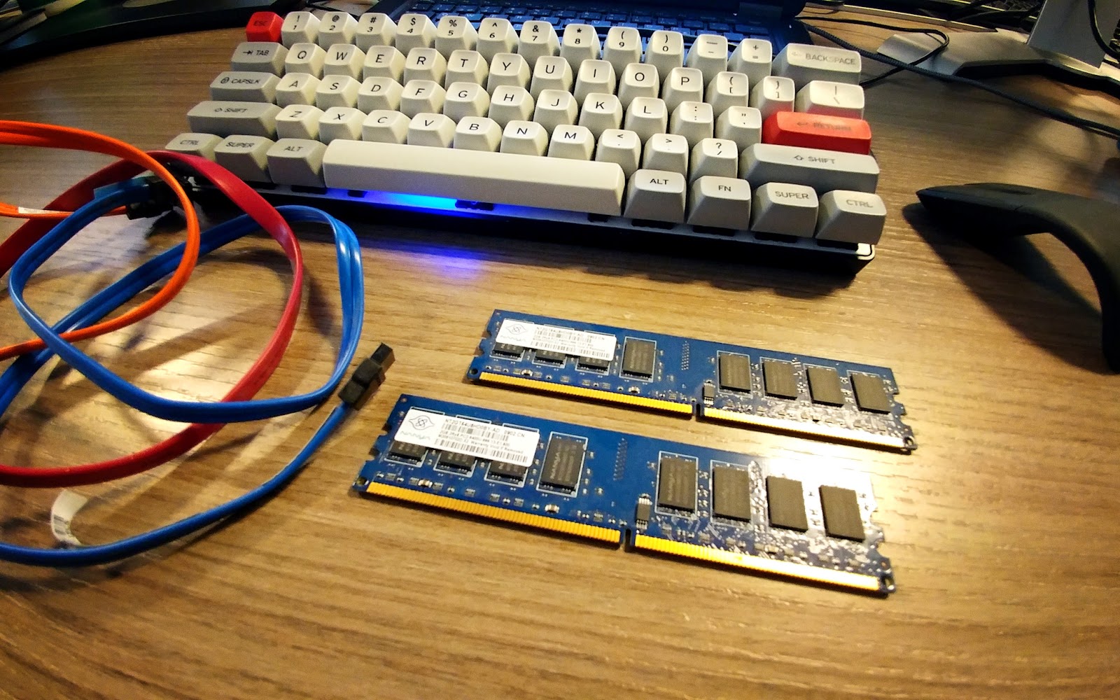 а як ішов на обід, випадково побачив у коридорі навірозібраний комп’ютер — наші ж поклали в спеціально призначеному місці, щоби його викинули на звалище. зазирнув, і… забрав собі три кабелі sata і дві планки пам’яті по 2 гб. забрав би ще й жорсткий диск… але мені вже наче й не треба?